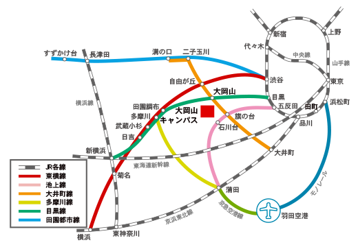 | 羽田空港から | 48分 | 羽田空港 ---> 品川 ---> 大井町 --> 大岡山/緑が丘 |