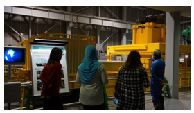 地層処分への理解を深めるための、人工バリア(オーバーパックと緩衝材)の実物や緩衝材定置試験設備を用いた実証試験など、高レベル放射性廃棄物の処分に関連する技術の研究状況とその成果が展示してあります。実規模試験施設は地層処分で用いられる人工バリア(ガラス固化体、オーバーパック、ベントナイト緩衝材)とこれらを定置する緩衝材ブロック定置装置が実規模で製作され展示されています。