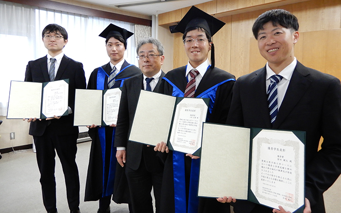 | 賞の概要 | 原子核工学コースでは学業・研究に励んだ学生を奨励することを目的として、優秀な学業成績を修め優れた修士論文を完成させ論文発表も優れていた学生に対し優秀学生表彰最優秀賞・優秀賞の授与を始め、令和8年3月原子核工学コース修士修了学生に対し1名に最優秀賞、4名に優秀賞を授与しました。 |